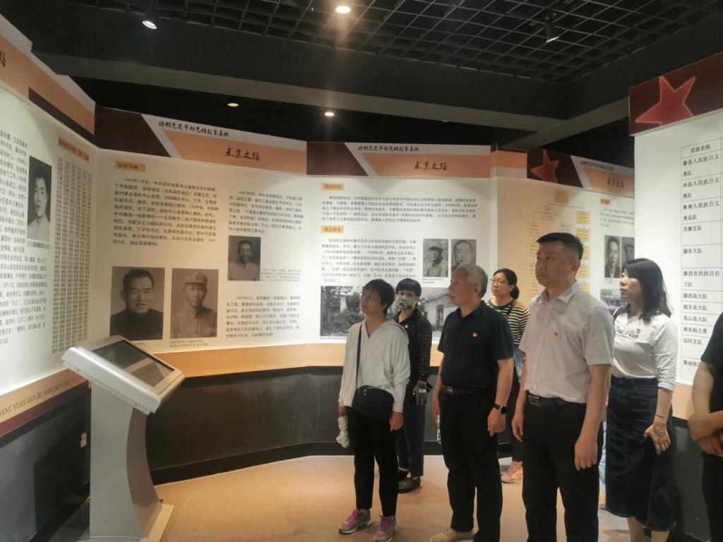 在滕州党员干部党性教育基地,党员们参观了“胜利之路”展览馆。展览馆以寻路为线索,以求索之路、抗争之路、护送之路、思想之路、复兴之路的“道路”思考为主题,充分展示了革命历程与英雄事迹。党员们认真观看学习每一幅图片、每一件历史实物,详细了解了微山湖地区的红色革命历史以及刘少奇等老一辈革命家在湖区留下的红色故事。湖区干部群众艰苦奋斗、不怕牺牲的抗战英勇事迹,让党员们思想受到了洗礼,党性得到了锤炼,进一步领悟了坚定理想信念的重要意义。最后,全体党员在“十柳渡广场”基地石碑前重温了入党誓词。