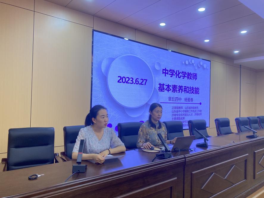 为贯彻落实教育部和山东省关于加强师范生教育实践的有关精神,进一步提升师范生教学综合素质,6月28日下午,化学与化工学院邀请章丘四中特级教师杨爱春在章丘校区第二学术报告厅为2021级化学专业师范生作专题讲座。学院专业教师董丽花、刘丹阳,2021级全体化学专业师范生现场聆听讲座。讲座由学院副院长张旭雪主持。