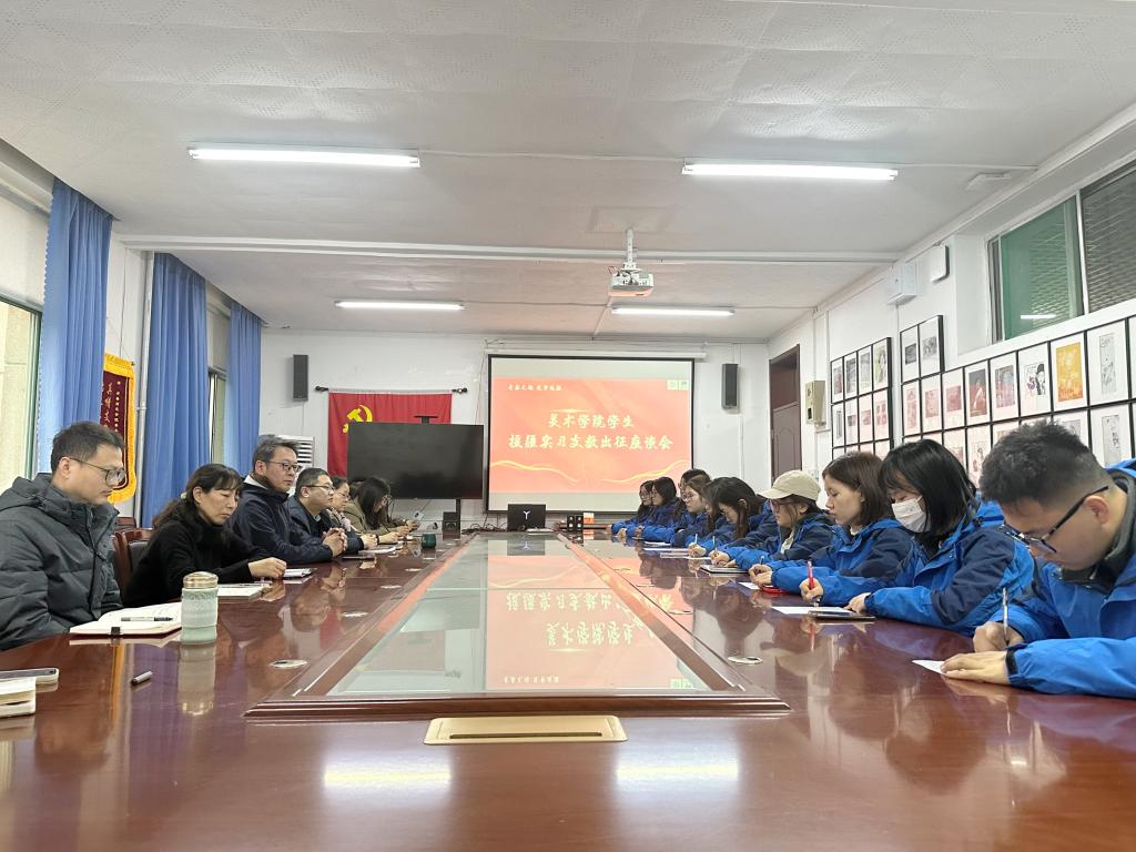 3月5日上午,美术学院在历下校区209会议室举办“青春无悔 筑梦边疆”学生援疆实习支教出征座谈会。学院党委书记辛源、院长杨三军、副院长李冉、院长助理王华军出席会议。学院办公室主任刘芳、团总支书记邹少爽,辅导员李玉涛、刘婷、杨茜及10名援疆实习支教学生参会。辛源主持座谈会。