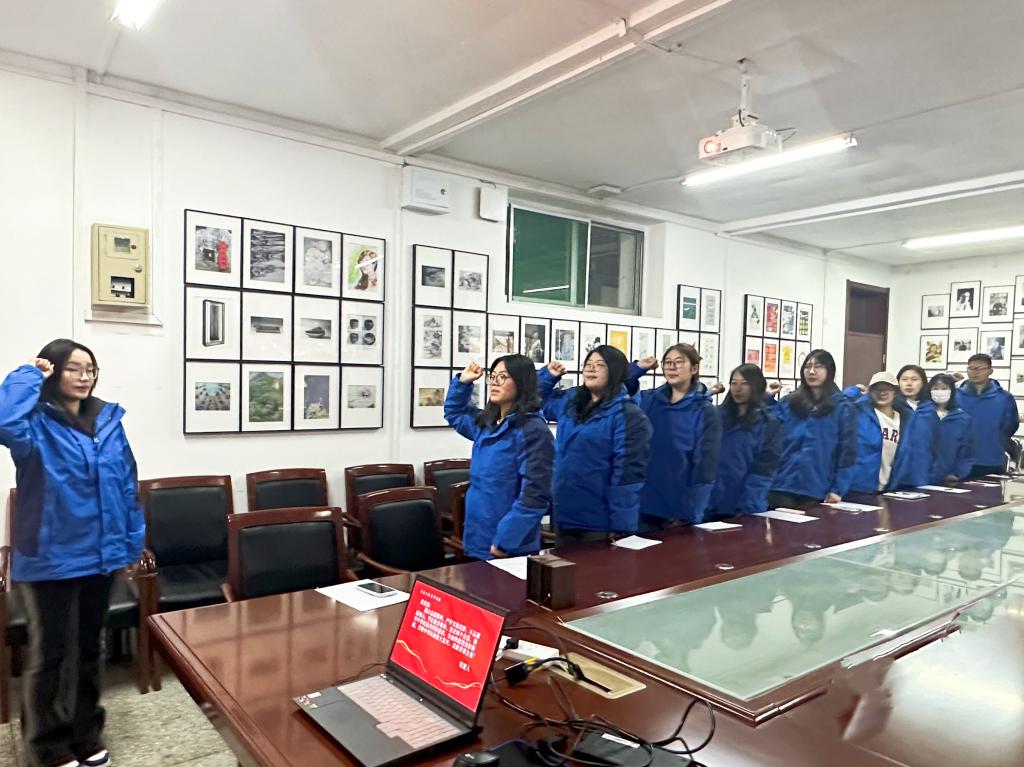座谈会上,全体成员齐唱国歌,庄严宣誓,并共同观看援疆支教短片《心之所向 远方不远》。