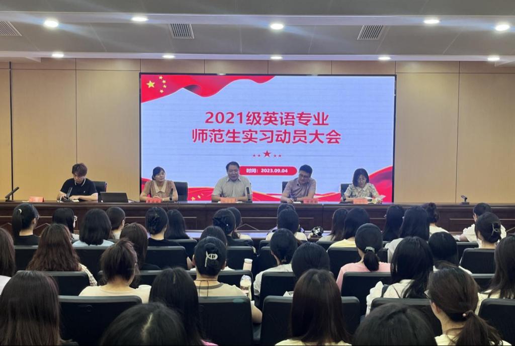 实习是教育教学的重要环节,是培养学生综合素养和锻炼实践技能的必要途径。为做好2021级英语师范专业学生实习前的准备工作,切实保证实习工作的顺利开展,9月4日下午,外国语学院在章丘校区第二报告厅举行2021级英语专业师范生实习动员大会。学院副院长谢士金、实习指导教师林德奖、董苗苗,2021级辅导员刘欣欣及2021级英语师范专业学生参加动员大会,会议由团总支书记牛荦主持。
