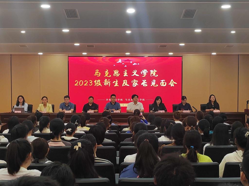 9月9日下午,马克思主义学院2023级新生及家长见面会在章丘校区第二学术报告厅以线上线下相结合的方式举办。学院党政班子成员、新生辅导员、班主任以及2023级全体新生和家长参加会议。见面会由学院党委副书记毛雯主持。