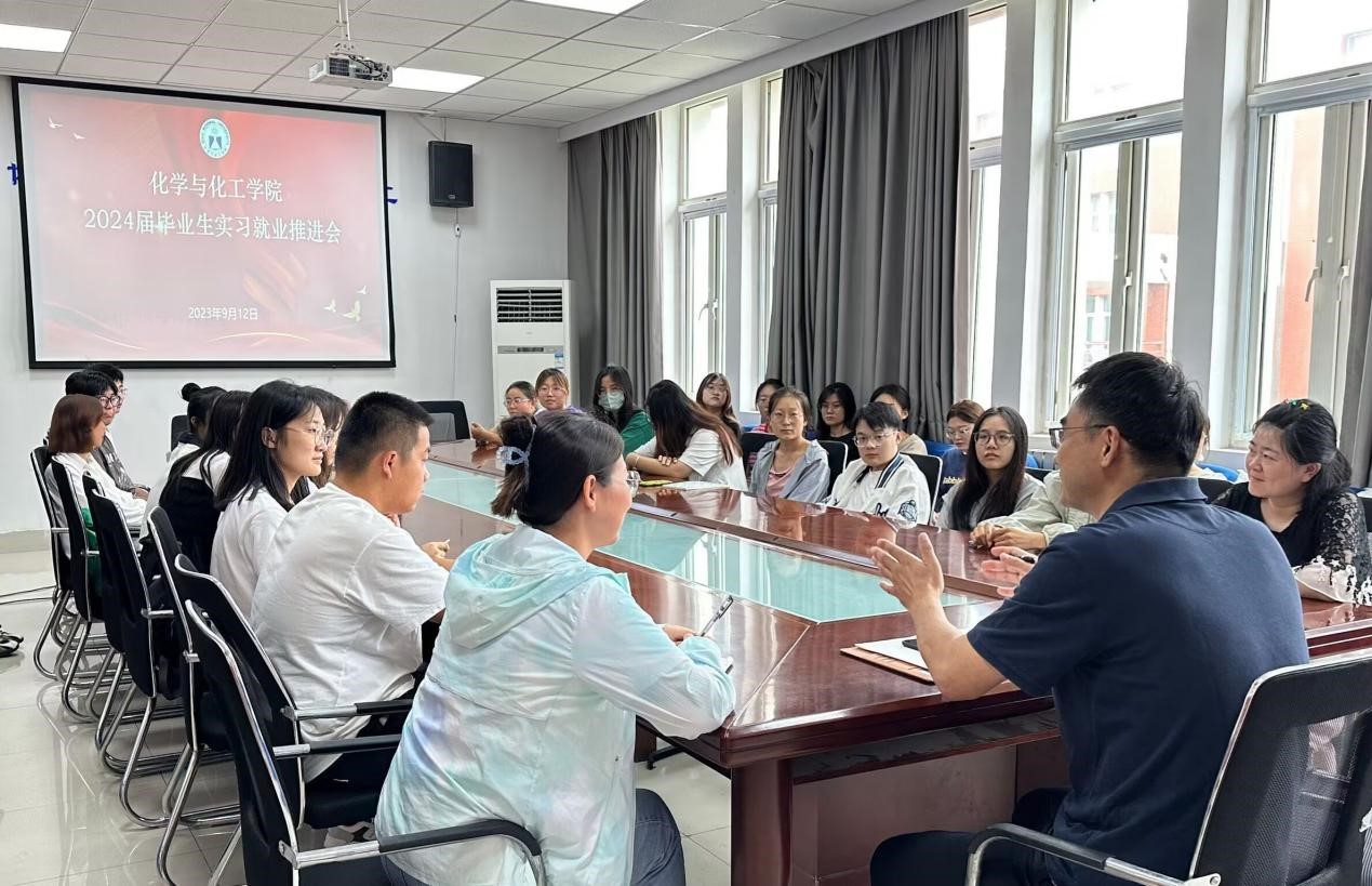 为加强学生对当前就业形势的了解,明确学生的就业需求,架起学生与企业之间的对接桥梁,9月12日下午,化学与化工学院2024届毕业生实习就业推进会在2号实验楼B310会议室召开。学院党委副书记巩磊、团总支副书记张凤云、兼职辅导员梁永鑫及30余名2024届毕业生代表参会。会议由张凤云主持。
