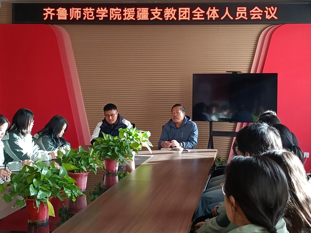 会议伊始,带队老师林德奖传达了学校领导前来看望慰问师生时的祝福和期望,学校高度重视援疆支教工作,无时无刻不在关心着援疆支教师生的工作和生活,希望大家在后续的实习支教工作中善始善终、再接再厉。