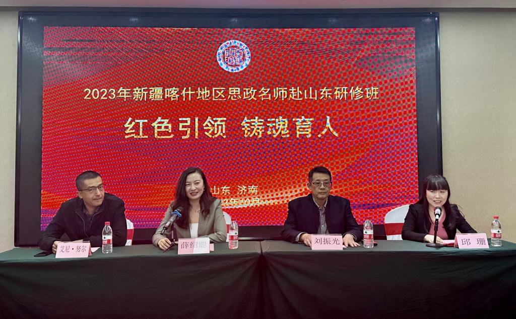 10月24日,由齐鲁师范学院承办的“2023年新疆喀什地区思政名师‘红色引领 铸魂育人’赴山东研修班”在济南顺利开班。齐鲁师范学院马克思主义学院教授刘振光、教师教育学院副院长薛绍聪出席开班典礼,开班典礼由教师教育学院副教授邱珊主持。