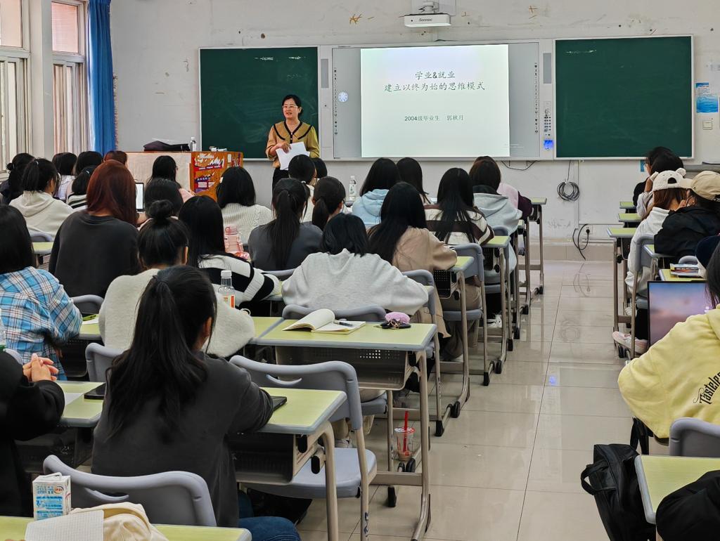 郭秋月对专升本、公务员、教师编、研究生等考试进行了解读,鼓励同学们专注学历、丰富阅历,充分锻炼自己,以“不害怕,不后悔”的态度全方位增强学习思考、沟通协作、独立探究等方面的能力。