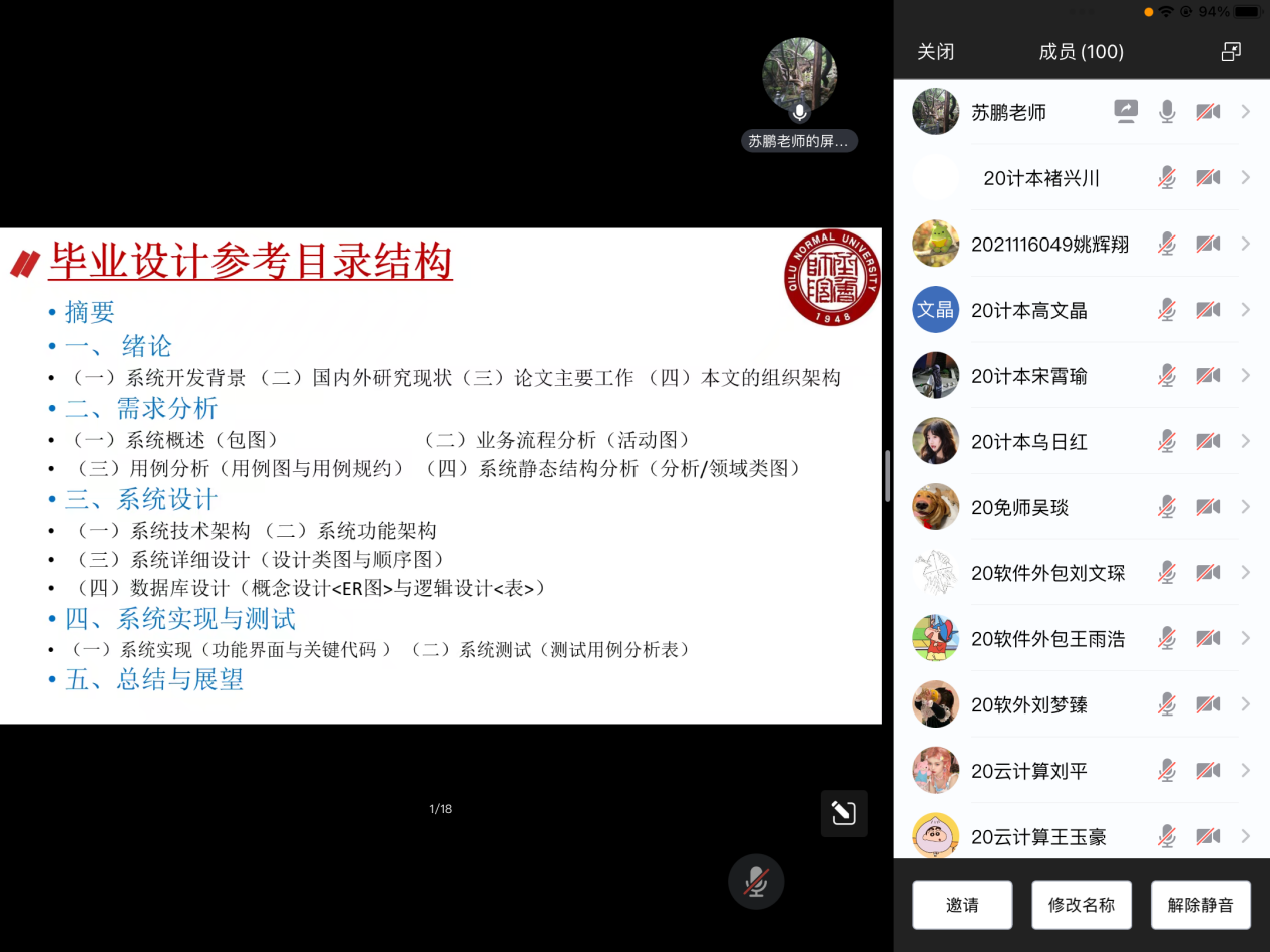 为有效提高学生毕业论文质量,10月16日,信息科学与工程学院举办“如何撰写毕业论文”主题讲座活动,有针对性地对2024届毕业生进行毕业论文(设计)写作进行指导。讲座由信息科学与工程学院教授苏鹏主讲,学院2024届全体毕业生以线上形式参加。