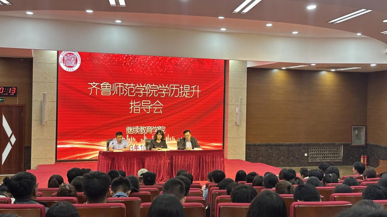 10月11日,齐鲁师范学院学历提升指导会议在章丘校区第一学术报告厅举行,济南市教育招生考试院副院长高斌受邀作学历提升指导专题讲座。继续教育学院副院长陈楠参加会议,继续教育学院宁波老师主持会议。学前教育学院、物理与电子工程学院、文学与历史文化学院以及化学与化工学院的大一专科新生共300余人现场聆听。