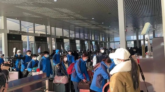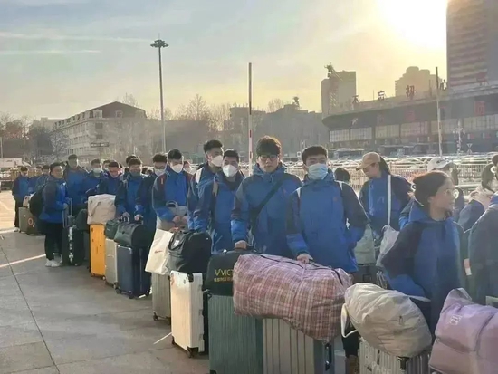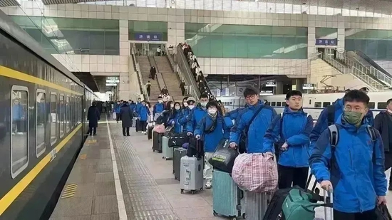 激动、喜悦、振奋……青年学生们很快便汇聚到一起,他们齐唱了《我和我的祖国》等歌曲,当熟悉的旋律响起,青年学子们再也按捺不住心中涌动的万丈豪情,激扬的歌声响彻火车站候车大厅。