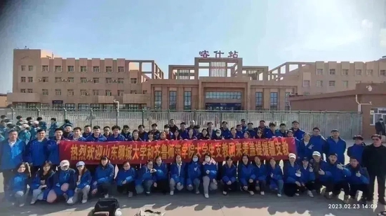 历经济南-河北-山西-陕西-甘肃-宁夏,20多个小时的乘车,齐鲁师范学院援疆实习支教团师生终于到达乌鲁木齐火车站,他们需要在此换乘前往喀什的火车。候车间隙,他们与聊城大学援疆实习支教团惊喜相逢。