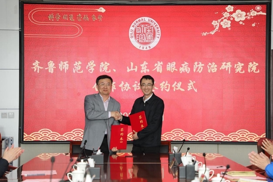 会议期间,樊泽民、王桂龙、林松柏和赵海强共同为实验室揭牌。齐鲁师范学院与山东省眼病防治研究院签署合作协议,标志着“校院融合”“体卫融合”发展迈向新台阶。山东中医药大学附属眼科医院副院长赵海强就实验室未来建设、研究方向及相关学术问题给予专业指导,为下一步实验室建设指明了方向。