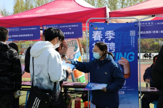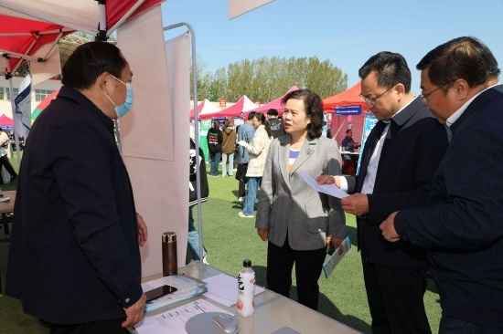 为深入贯彻落实党中央“就业优先”决策部署,积极推进春季促就业攻坚行动,全力促进学校毕业生顺利就业、充分就业、高质量就业,4月8日,齐鲁师范学院“‘就选山东 情留齐鲁’2023届毕业生集中招聘活动”在章丘校区田径场成功举办,来自省内外320家用人单位到场参会,提供岗位21027个,5000余名学生到场参会。学校党委副书记赵敏、章丘区人社局局长李士锋现场调研用人单位人才招聘情况。章丘区人社局、大学园区管理服务中心、章丘区中华职业教育社、淄博高新区人社中心相关负责同志,校党委办公室、党委宣传部、学生工作部(处)、安全管理处、团委、后勤管理处等相关部门负责同志、各二级学院党委副书记、毕业班辅导员共同参加活动。