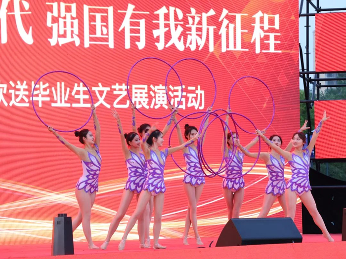 近日,齐鲁师范学院2023年欢送毕业生文艺展演在章丘校区体育场隆重举行。