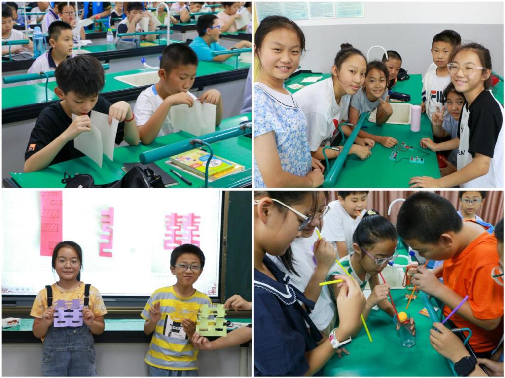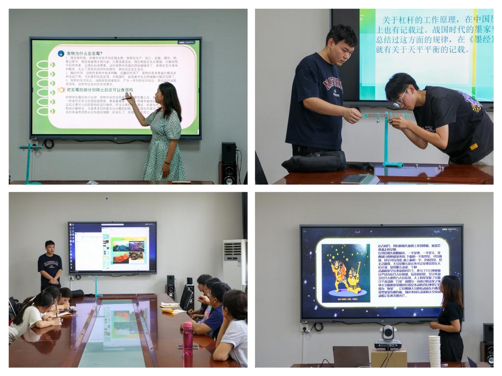 “晨光出照屋梁明,夜昏执笔把家还。”在为期5天的志愿授课中,服务队队员们以自己的学科专业素养为基、以学生为本,因材施教,向道通实验学校的同学们讲授了杠杆原理、声音的传播、电的妙用、流体压强及流速关系与光学现象等物理知识,并依托学校特色天文专业开展太阳系八大行星、航天航空、认识星星、追溯宇宙历史等天文科普课程。志愿者们利用提问、观看趣味视频、做游戏、做实验等教学手段提高教学效率,充分调动小学生们的积极性,让他们亲身参与到课堂教学中,激发他们对科普探索的热忱,在“小雏鹰们”心中埋下一颗颗“科学”的种子。