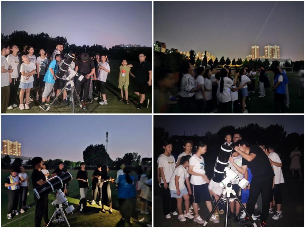 “以星宿明德,以实践笃行。”7月18日晚,志愿服务队队员们邀请学院青年博士、奎虚天文社指导教师任逸一起前往道通实验学校操场开展“探索神秘星空,播种天文梦想”科普观测活动,向道通实验学校的孩子们科普天文望远镜的工作原理、方法,以及星座、行星等天文知识,通过望远镜观测行星,激起道通实验学校的孩子们学习天文知识的热潮。未来学院将持续开展天文科普知识课堂、天文观测等多种形式的活动,为学生提供更好的交流学习平台,向青少年传播科学精神、倡导科学方法,为更多的学生点亮科学梦想。
