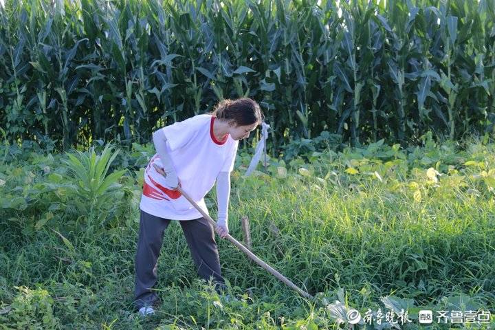 户外烈日炎炎,志愿者们一边为村民们科普绿色环保知识,一边顶着烈日在街道上锄草、捡垃圾。