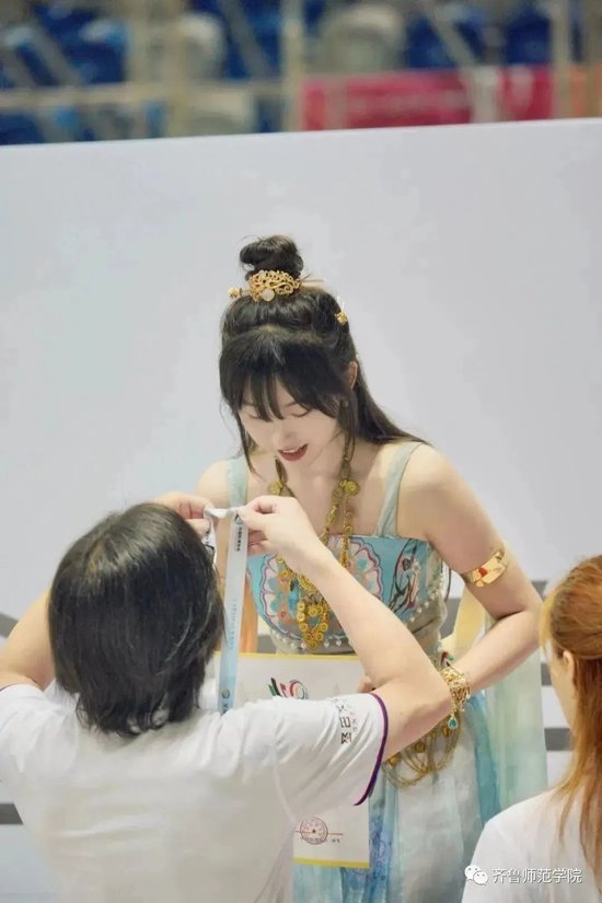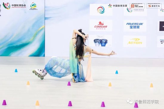 将国风与轮滑融合,可没有那么简单,为了将国风文化在轮滑比赛中得到更精致完美的展现,秦雨晴每次比赛都要付出比别人更多的时间和精力。一方面需要不断磨合轮滑、舞蹈动作,并进行坚持不懈的练习;另一方面,每一件国风比赛服,都需要专门设计、定制,实在来不及,也会将买来的服装进行精心修改、调整,每一处细节都要扣到极致……来到大学后,接受着以君子文化为内核的校园文化的熏陶,触摸着齐鲁文化长廊悠久灿烂的历史,也让秦雨晴对中华优秀传统文化有了更加深刻的认识和理解,国风元素与轮滑技艺的融合愈发契合,因此,才有了如此美轮美奂、仙气飘飘的敦煌飞天少女……