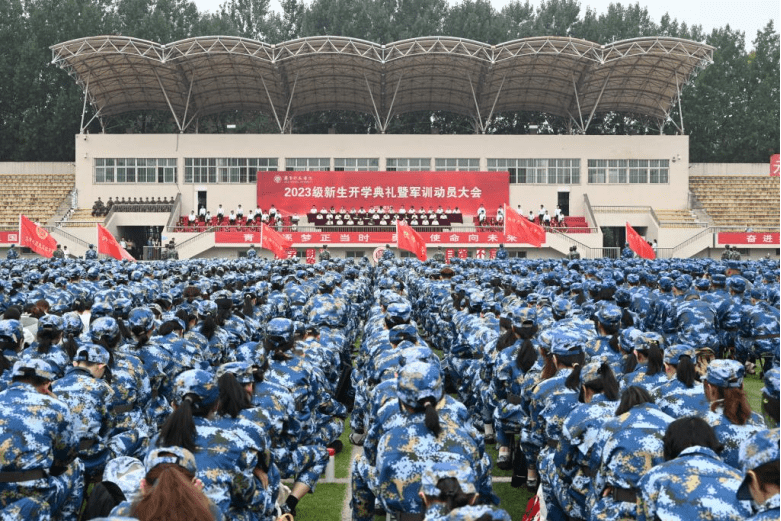 2023级全体新生立下“请党放心,强国有我!”的铮铮誓言。开学典礼暨军训动员大会在全体师生齐唱《歌唱祖国》的豪迈歌声中落下帷幕。