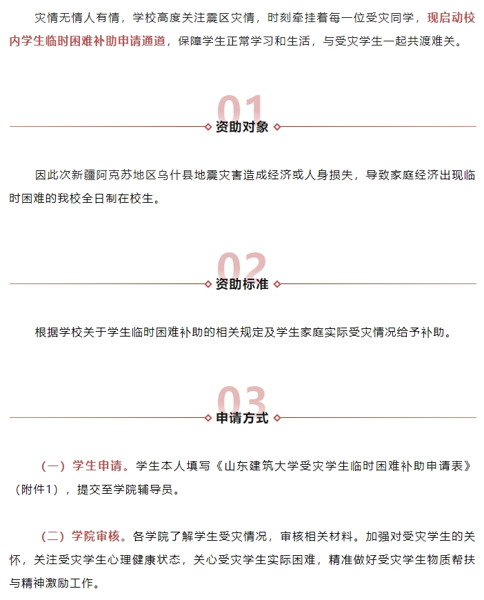 山东建筑大学:启动校内学生临时困难补助申请通道