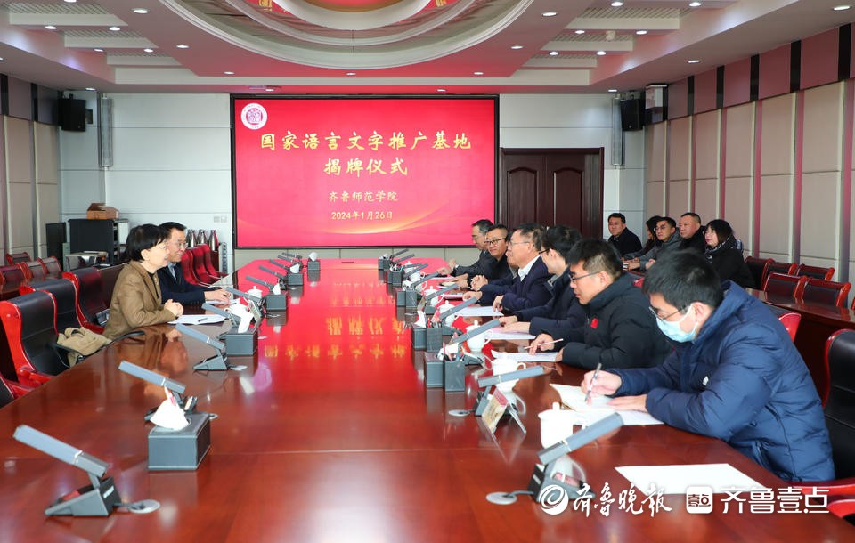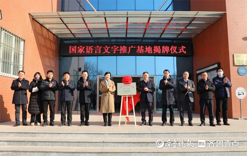 1月26日上午,齐鲁师范学院国家语言文字推广基地揭牌仪式在章丘校区图书馆举行,山东省教育厅副厅长孙晓筠、山东省语言文字工作委员会办公室主任赵世团、齐鲁师范学院党委书记林松柏以及学校相关部门负责人参加揭牌仪式。
