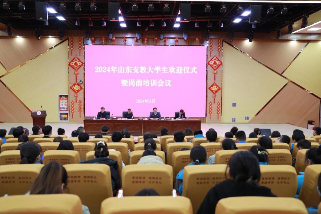 3月11日下午,山东日照援疆指挥部在麦盖提县第四中学报告厅召开2024年山东支教大学生欢迎仪式暨岗前培训会议。麦盖提县委副书记、日照援疆指挥部党委书记、指挥王法强,麦盖提县政协副主席、县委教育工委常务副书记何军,日照援疆指挥部工会主席、县教育局党组成员、副局长许崇武,麦盖提县教育局有关同志,齐鲁师范学院、聊城大学全体援疆实习支教师生及受援学校负责人参加会议。会议由麦盖提县教育工委副书记李瑞芬主持。